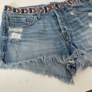 Abercrombie & Fitch Embroidered Boyfriend Cutoff Denim Shorts Size 28 Aztec