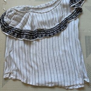 Abercrombie & Fitch - Embroidered One-Shoulder Ruffle Top
