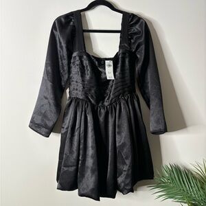 Abercrombie & Fitch Emerson Bubble Hem Mini Dress Smocked Black Medium Petite