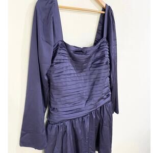 Abercrombie & Fitch Emerson Drop Waist Satin Mini Dress In Blue XL Tall NWT