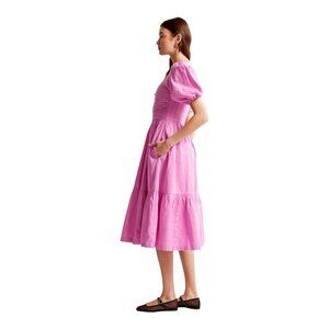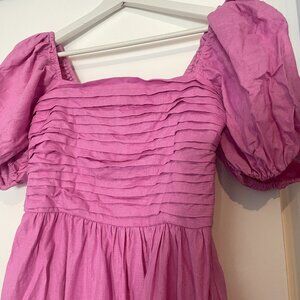 Abercrombie & Fitch Emerson Linen-Blend Puff Sleeve Midi Dress in Pink Size S
