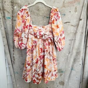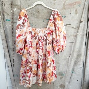 Abercrombie & Fitch Emerson Poplin Puff Sleeve Mini Dress Orange