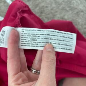 **color is a hot pink. Not as red as it looks in the photos. Also more “hot pink” looking than in stock photos. Hard to get the lighting right!