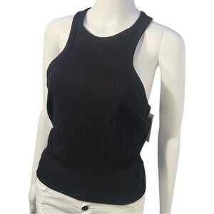 NWT Abercrombie & Fitch Essential High-Neck Rib Tank in black. Slim-fitting tank, softAF rib fabric and cropped length, featuring trendy high-neck detail and all-over ribbed detail.