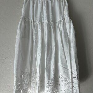 Super cute Abercrombie & Fitch eyelet midi skirt in size M - elastic waist and lined. Has a very small pen line (as seen in picture) but otherwise in excellent condition.