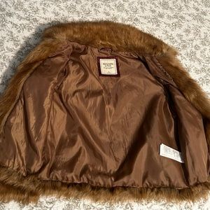 A trendy party coat in cozy faux fur fabric and classic length. The perfect warm coat for all your festivities!