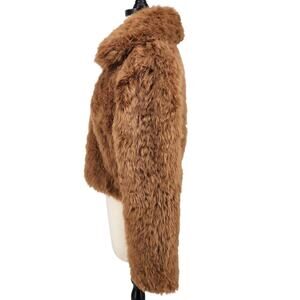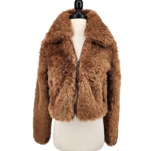 Abercrombie & Fitch Faux Fur Teddy Tan Brown Cropped Full Zip Jacket Size XS