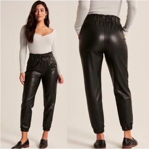 Abercrombie & Fitch Faux Leather High Waisted Joggers Black Vegan Size S