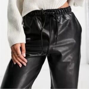 Abercrombie & Fitch Faux Leather High Waisted Joggers Black Vegan