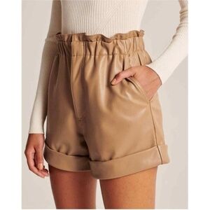 Abercrombie & Fitch Faux Leather Shorts Sz M Elastic Waist Preppy Neutral