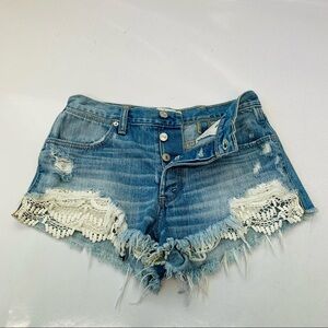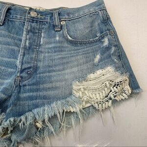 Abercrombie & Fitch Festival Short High Rise 2/26 Crochet Distress Button Fly