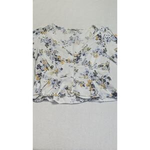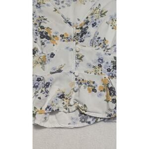 Abercrombie Fitch Floral Button Top Blouse White Medium Babydoll Coquette Crop