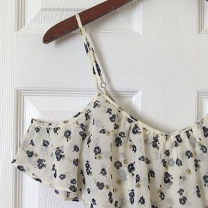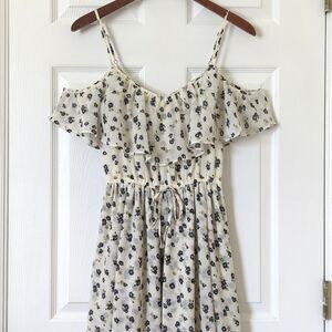 Abercrombie & Fitch Floral Chiffon Cold Shoulder A-Line Maxi Dress Ivory Navy S