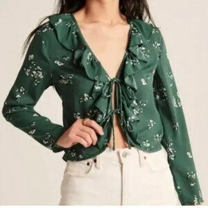 Abercrombie & Fitch Floral Green Tie Front Ruffle Blouse Size XS