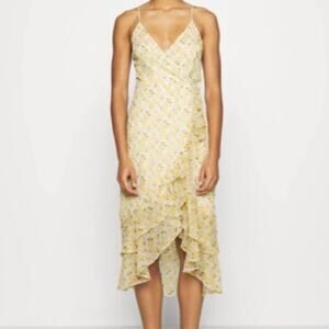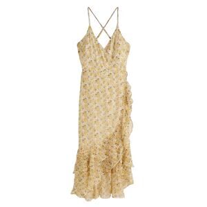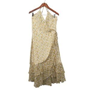Abercrombie & Fitch Floral Midi Dress Large Yellow Ruffle Feminine Garden Party