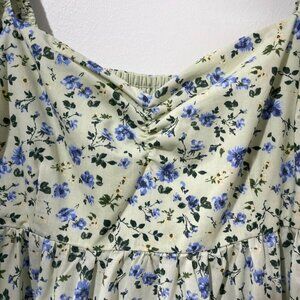 Step into soft, romantic charm with this Abercrombie & Fitch Puff Sleeve Poplin Midi Dress. Featuring a fresh green base scattered with dainty blue florals, this dress brings cottagecore dreams to life.