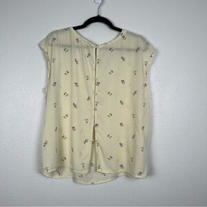 Abercrombie & Fitch Floral Short Sleeve Button Back Blouse Yellow Sz XL
