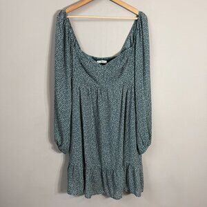 Abercrombie & Fitch Floral Smocked Ruffle Mini Dress Women's Large Tall LT Green