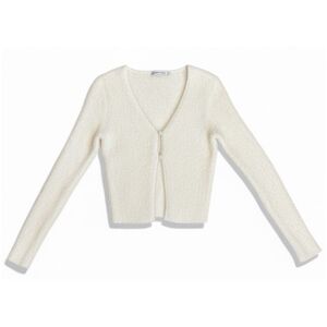 Abercrombie & Fitch Fuzzy Pearl Button Cream Cropped Cardigan XS Soft Knit