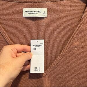 Abercrombie & Fitch Fuzzy Sweater Style Bodysuit. V neck-line and long-sleeves that are capped for a more tailored look. It is cozy and soft. Color is a dusty rose/ mauve pink. This item is new with tags. From a smoke-free home. Bundle & save; make an offer! Returns accepted; return shipping paid by buyer.