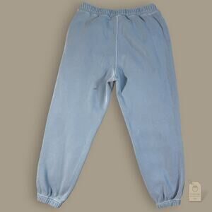Soft, garment-dyed fleece joggers in a washed blue tone -relaxed, cozy, & perfect for everyday wear. Elastic waist + cuffs, side pockets, & that A&F vintage wash look. Some tiny paint speckles noted but still very wearable & comfy.