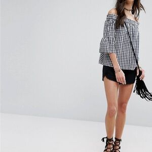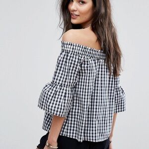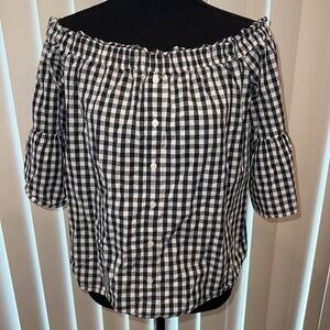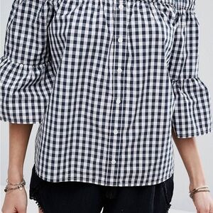 Abercrombie & Fitch Gingham Off Shoulder Button Front Shirt Small