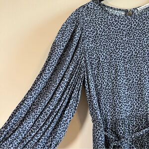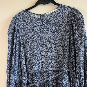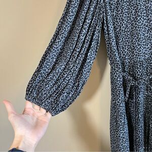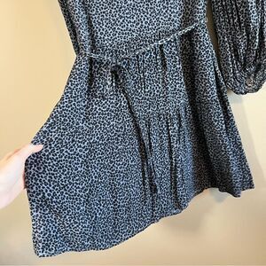 Abercrombie & Fitch women’s gray and black cheetah print long sleeve mini dress with pockets and detachable belt.
