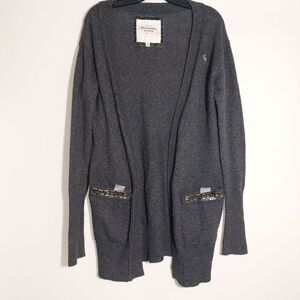 Abercrombie & Fitch Gray Cardigan Sweater Embellished Pockets Open Front