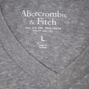 This classic V-Neck gray tee from Abercrombie & Fitch features a comfortable crew neck and short sleeves, crafted from a soft cotton blend for everyday wear.