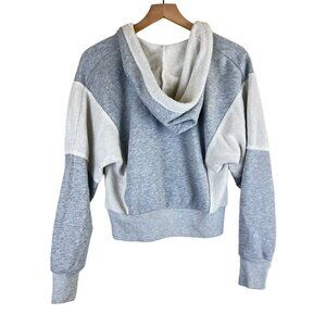 Abercrombie & Fitch Gray Terry Mixed Media V-Neck Cropped Hoodie