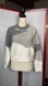 This is a cropped and oversized mock neck sweater. Cozy and stylish, this gray and white sweater is perfect for any occasion. Its soft fabric ensures comfort and warmth. There is a bit of pilling, and small discoloration on the end of the sleeve. It is in overall good condition. Great for Spring! It is quite oversized!