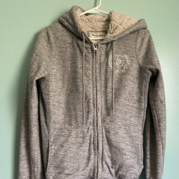 Abercrombie & Fitch Gray Zip-Up Jacket with soft wool lined inside and hood