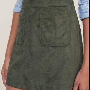Good pre worn condition. Abercrombie & fitch green faux suede mini skirt. Two front pockets. Size 8. Side zipper. So cute for the fall and winter. All sales final.