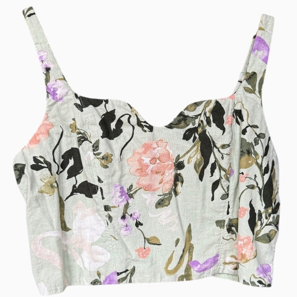 Abercrombie & Fitch Green Floral Linen Crop Top Sz XL