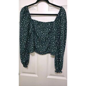 Abercrombie & Fitch Green Polka Dot Smocked Off-Shoulder Blouse With Long Sleeve