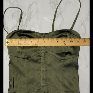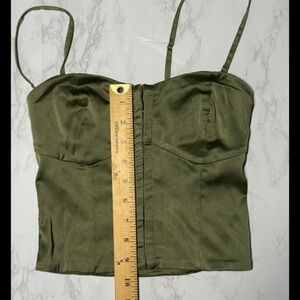 Abercrombie & Fitch Green Satin Hook-and-Eye Corset Top | Adjustable Straps- XXS