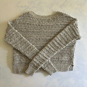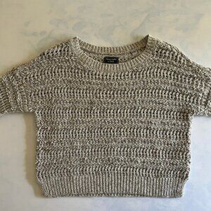 Abercrombie & Fitch Grey Knit Open Stitch Cropped Crewneck Sweater