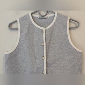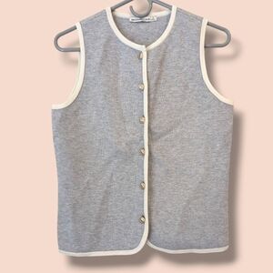 Abercrombie & Fitch Grey LuxeLoft Gold Button-Up Mara Crewneck Sweater Vest Preppy.