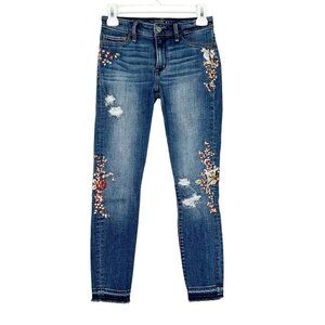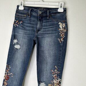 Abercrombie Fitch Harper Low Rise Ankle Jeans Womens Size 25 Skinny Embroidered