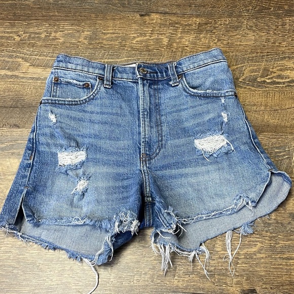 Abercrombie & Fitch High Rise 4" Jean Shorts Blue Denim Distressed Womens 25/0