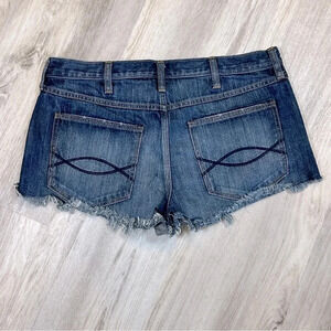 Excellent condition! Cheeky Abercrombie & Fitch distressed denim cutoff festival shorts with exposed button-fly front closure.
