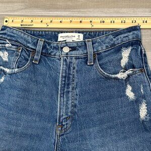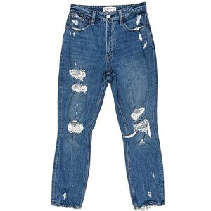 Abercrombie & Fitch High Rise Mom Jean Curve Love in Medium Wash Distressed