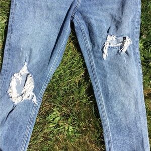 Abercrombie & Fitch High Rise Mom Jeans Distressed Ripped Denim Size 27/4 L
