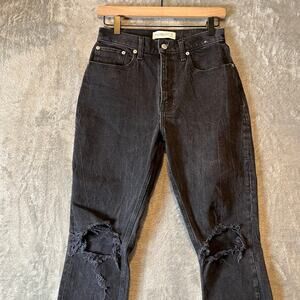 Abercrombie & Fitch High Rise Mom Jeans Size 26 Regular Black Distressed