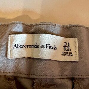 Elevate your workwear wardrobe with these tailored wide-leg trousers from Abercrombie & Fitch. Crafted from a structured stretch fabric blend, these light gray pants feature a flattering high-rise waist, front pleats, belt loops, and back welt pockets. Versatile enough for the office or dressed-up casual looks, these trousers combine comfort and polish. Size 12 / Waist 31 Short length