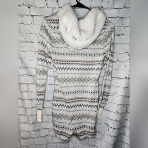 Abercrombie & Fitch Hooded Pajama Romper Sherpa Knit White Gray Size Small