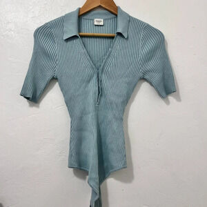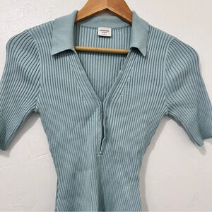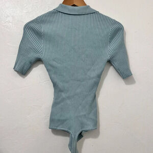 Abercrombie & Fitch Hook and Eye Bodysuit Short Sleeve Collar Rib Knit Blue S