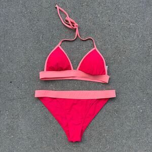 Abercrombie & Fitch Hot Pink Coral Triangle Halter Bikini 2 PC Swimsuit Medium