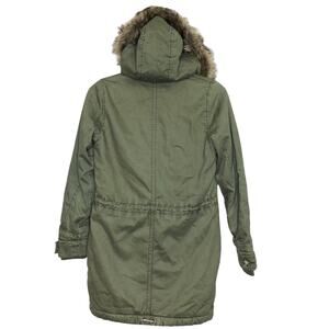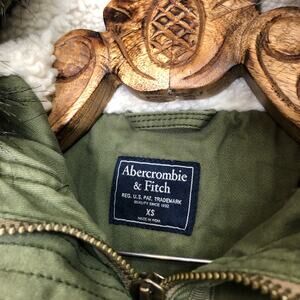 Abercrombie & Fitch Jacket Long Coat Olive Sherpa Lined Faux Fur Hood Utility xs