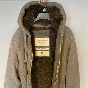 Abercrombie & Fitch Jacket Mens Medium Grey Wolf Jaw Heavy Faux Fur Hoodie Y2K